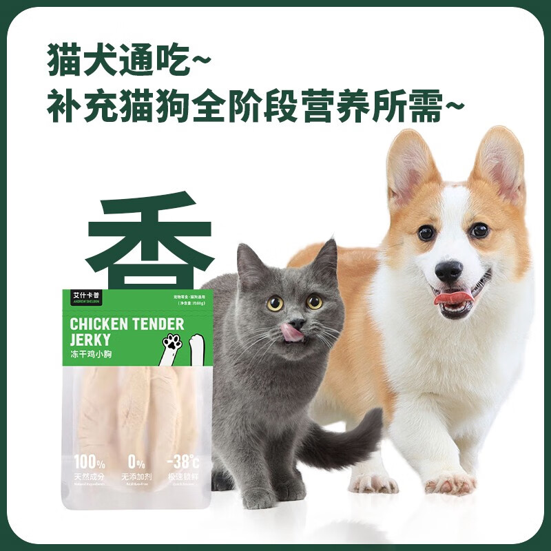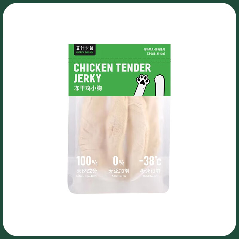 艾什卡普鸡小胸冻干猫零食大块纯鸡肉干宠物磨牙猫狗通用 1袋装【单袋重量:约80g】