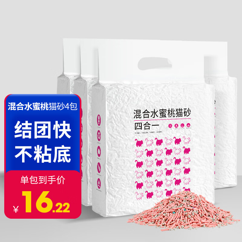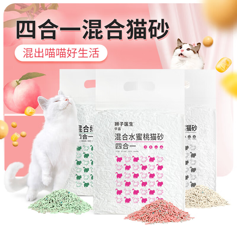 狮子医生华畜混合猫砂4袋装水蜜桃豆腐砂消味结团低尘不粘底猫沙猫咪用品