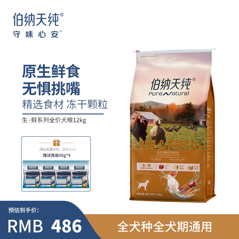 伯纳天纯冻干狗粮三种肉成犬幼犬中大型小型犬通用农场派对鸡肉鸭肉火鸡肉 0谷物通用三种肉12kg