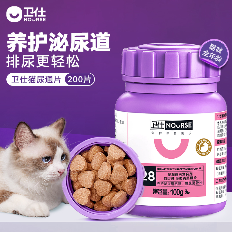 卫仕 猫尿通200片 提供宠物猫咪下泌尿道粘膜所需低聚壳聚糖维生素 胡歌代言