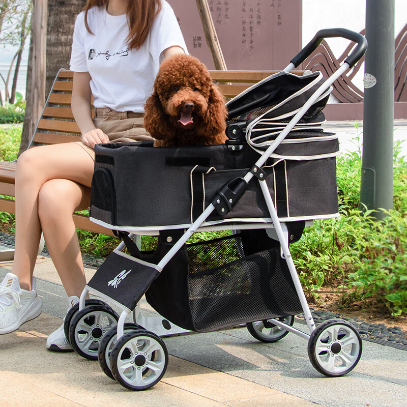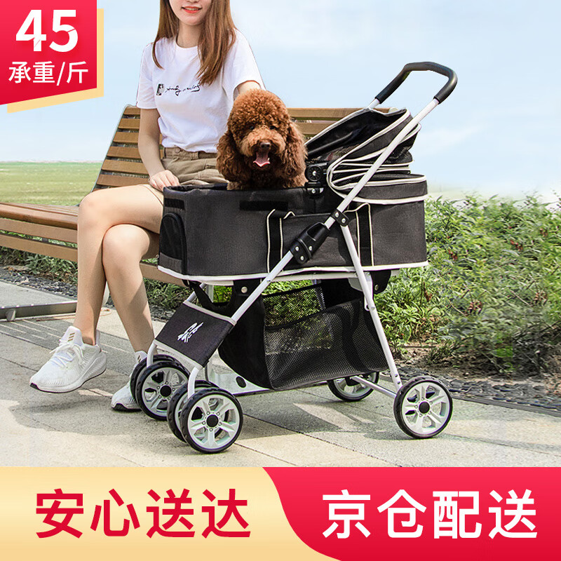 DO DO PET分离式宠物推车中小型犬猫咪外出手推车轻便折叠泰迪柯基狗狗推车 黑色-可分离摇篮(承重45斤内)