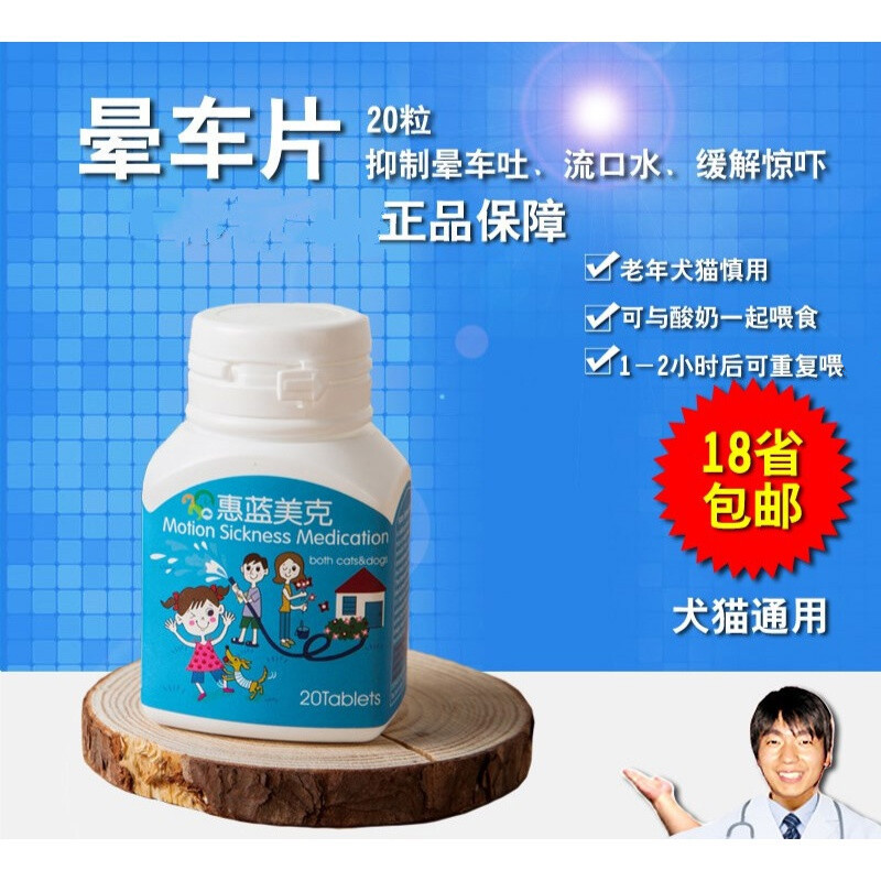 宠物晕车药片犬猫通用猫咪泰迪金毛拉布拉多狗狗晕车片长途旅行安抚情绪抑制吐呕吐晕车惊吓20粒