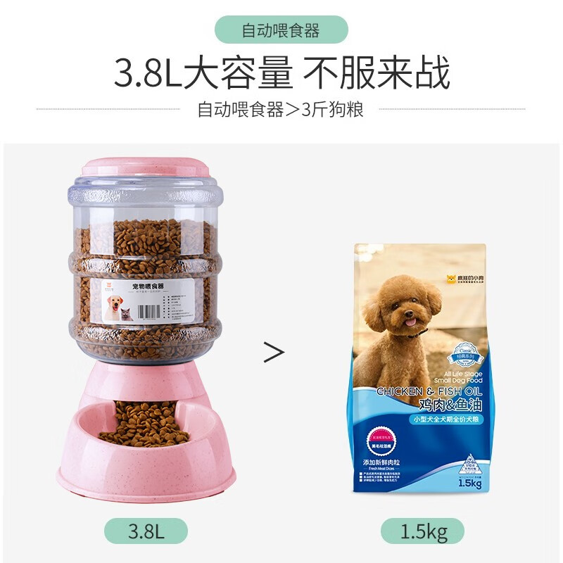 疯狂的小狗 宠物用品狗碗喂水器狗狗饮水器猫碗狗盆食具水具 自动喂食器3.8L 粉色