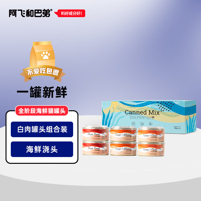 阿飞和巴弟 宠物猫粮猫湿粮猫罐头海鲜罐头白肉罐 85g*6罐组合装猫咪零食鱼罐头成猫幼猫猫粮
