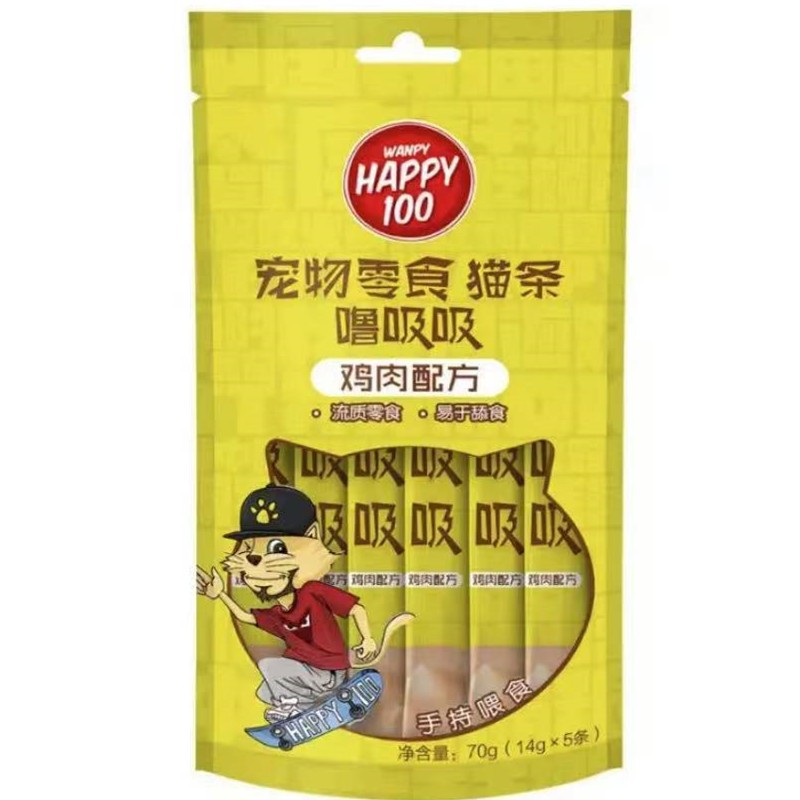 Wanpy顽皮Happy100猫条噜吸吸猫条猫粮猫咪湿粮拌饭成猫幼猫营养猫零食 鸡肉14g*5支/袋