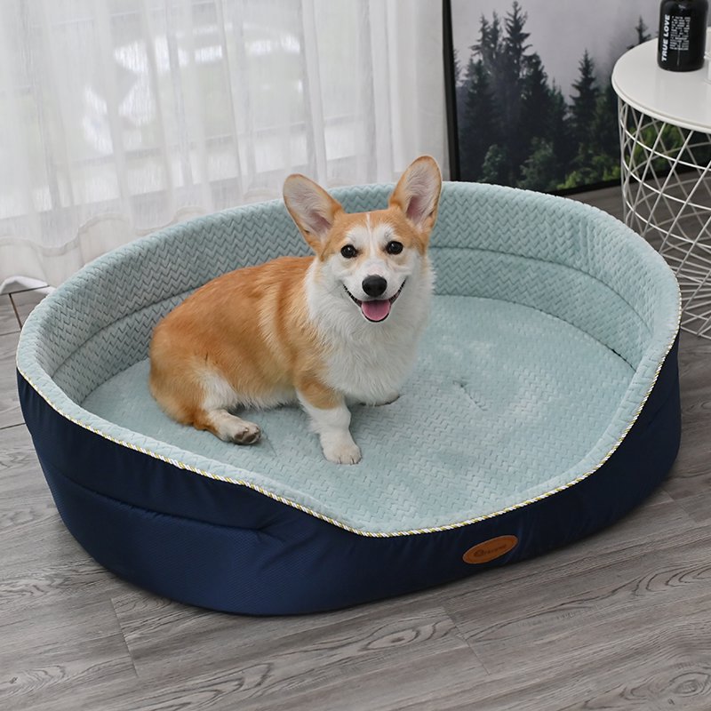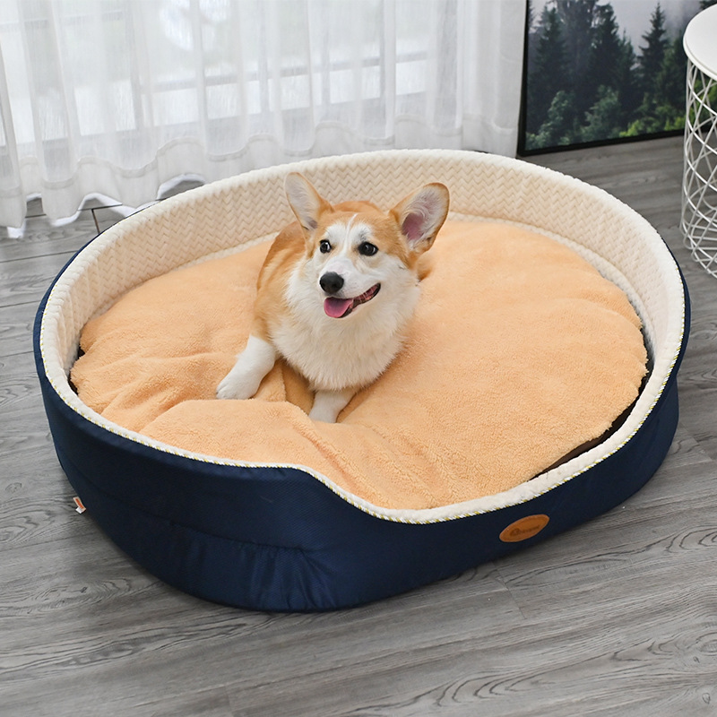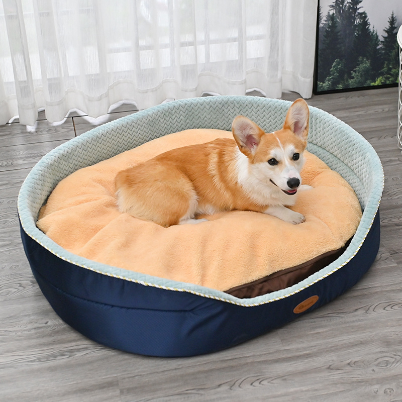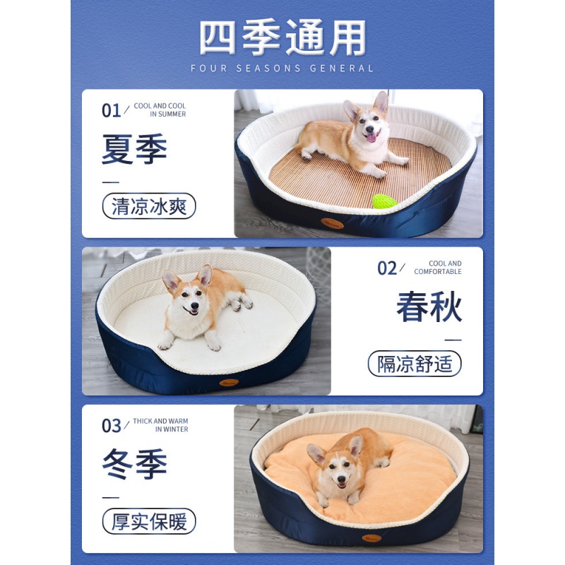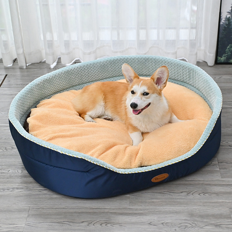 狗窝四季通用厚垫子冬季金毛大型犬狗沙发冬天用品狗床宠物床 波浪法兰绒两用海绵窝 小号45CM(建议5斤内宠物)