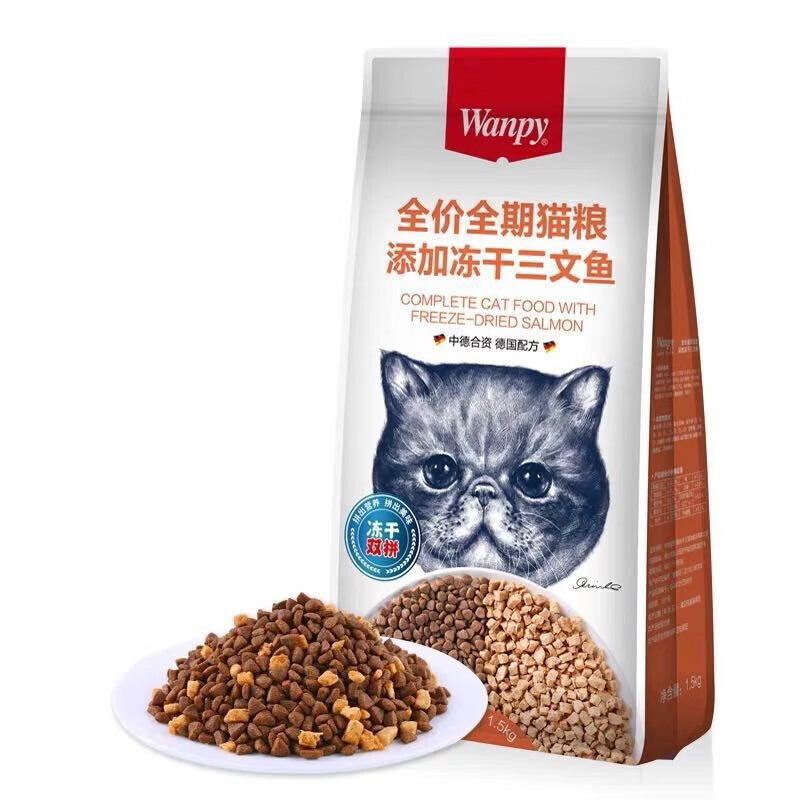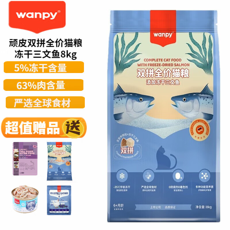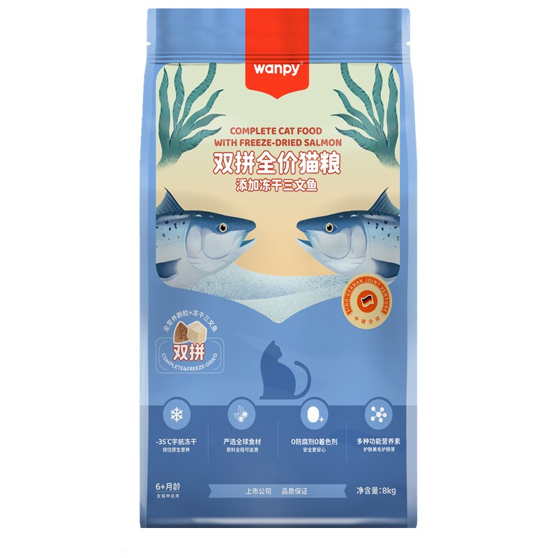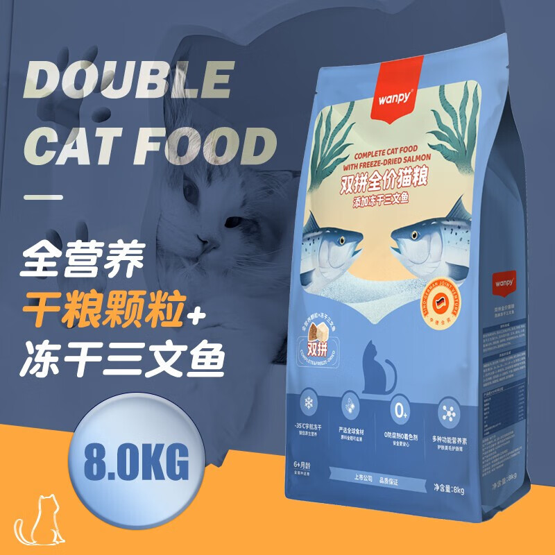 顽皮(Wanpy)双拼猫粮冻干三文鱼幼猫粮美短布偶全价猫粮成猫增肥发腮 8kg冻干三文鱼猫粮