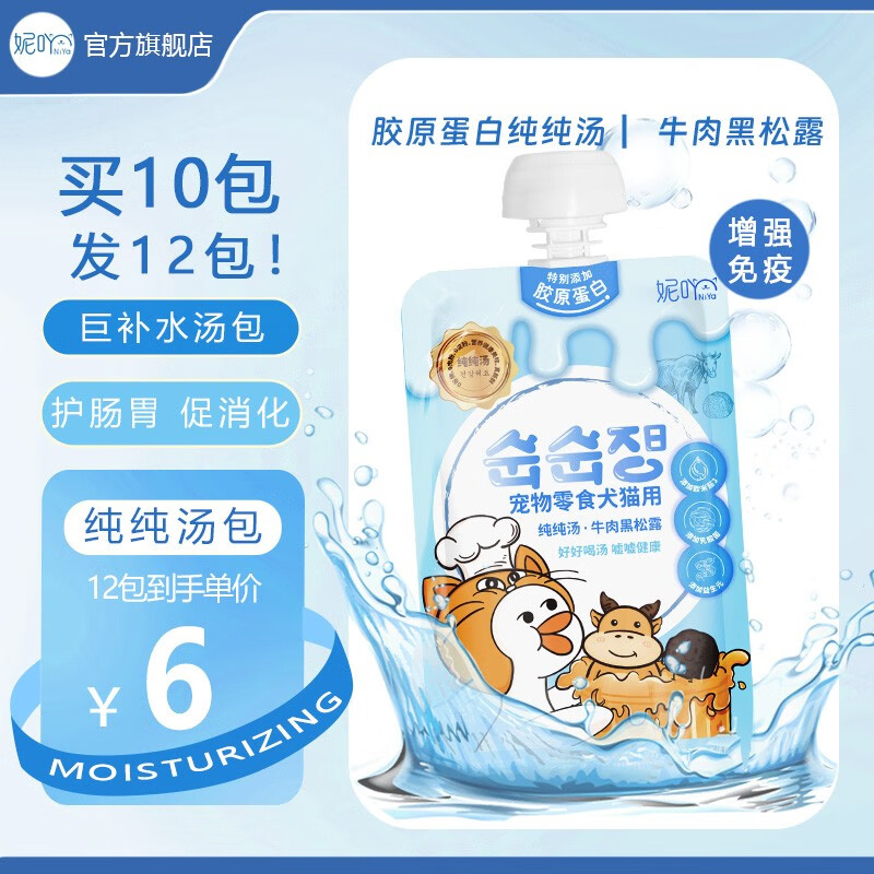 妮吖猫咪狗狗零食补水汤包即食湿粮全价 胶原蛋白纯纯汤 牛肉黑松露 纯纯汤 6包装