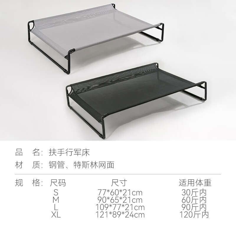嬉皮狗(hipidog)狗窝四季通用狗狗行军床可拆洗狗床夏天猫床金毛大型犬夏季宠物床 优雅灰 M-中号(建议60斤内)