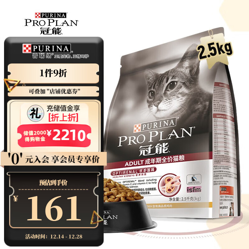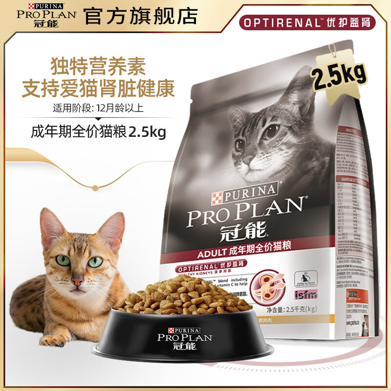 冠能(PRO PLAN)成猫猫粮 英短美短成猫粮 优护益肾 鸡肉味 2.5kg