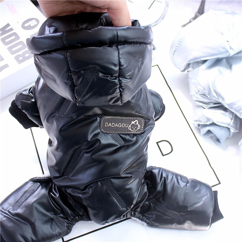 宠物泰迪加厚秋冬装博美小型幼犬雪纳瑞比熊小狗狗羽绒棉衣服保暖 黑色_轧花亮皮四腿衣 S-背长20胸围33约2~3.5斤