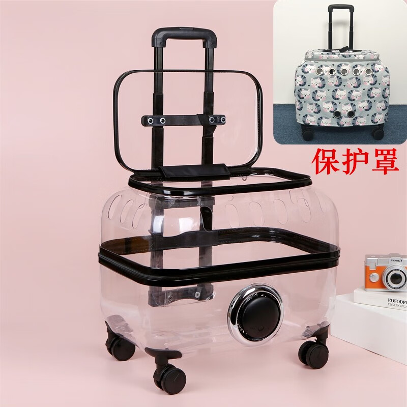 宠天使猫包外出便携宠物拉杆箱大容量猫咪太空舱狗箱宠物推车透明猫书包 k35透明新风 保护罩