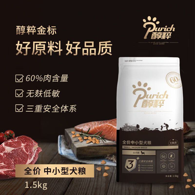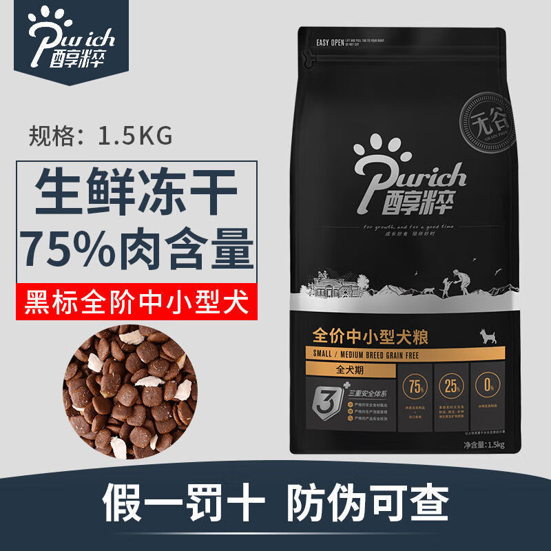 醇粹(Purich)狗粮黑标中小型犬粮1.5kg无谷鲜肉冻干狗粮泰迪纯粹 黑标冻干1.5kg(75%肉含量)8