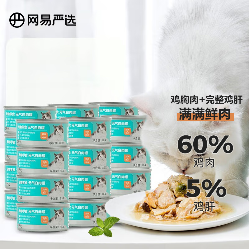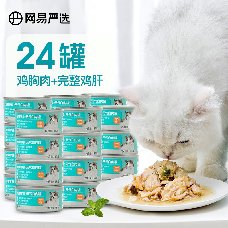 网易严选 猫罐头湿粮白肉罐斗笠鸡胸肉 完整鸡肝混合口味 85g*24罐 整箱装