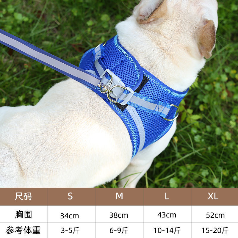 【精选】中型小型犬背心式狗狗牵引绳泰迪狗链子遛狗绳宠物胸背带狗狗用品地狼 2米绳子Z字型包边狗狗款【蓝色】 XL码(亏完为止)