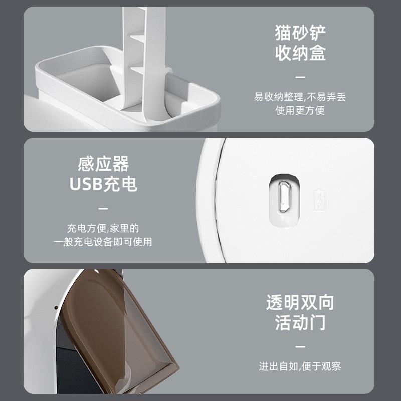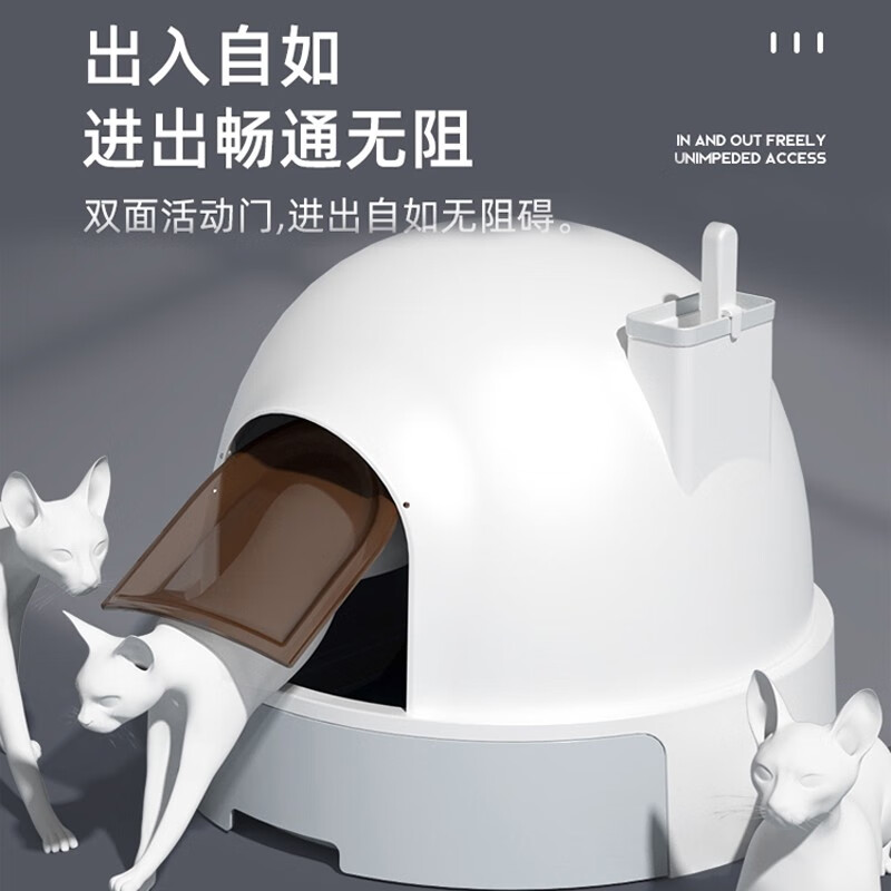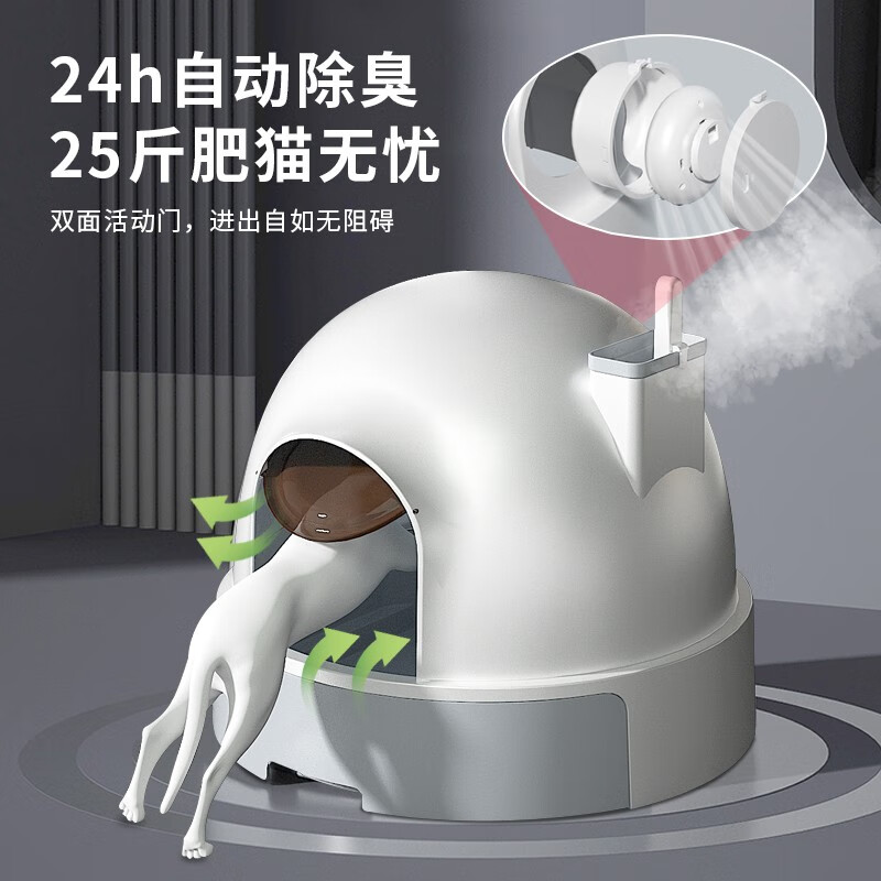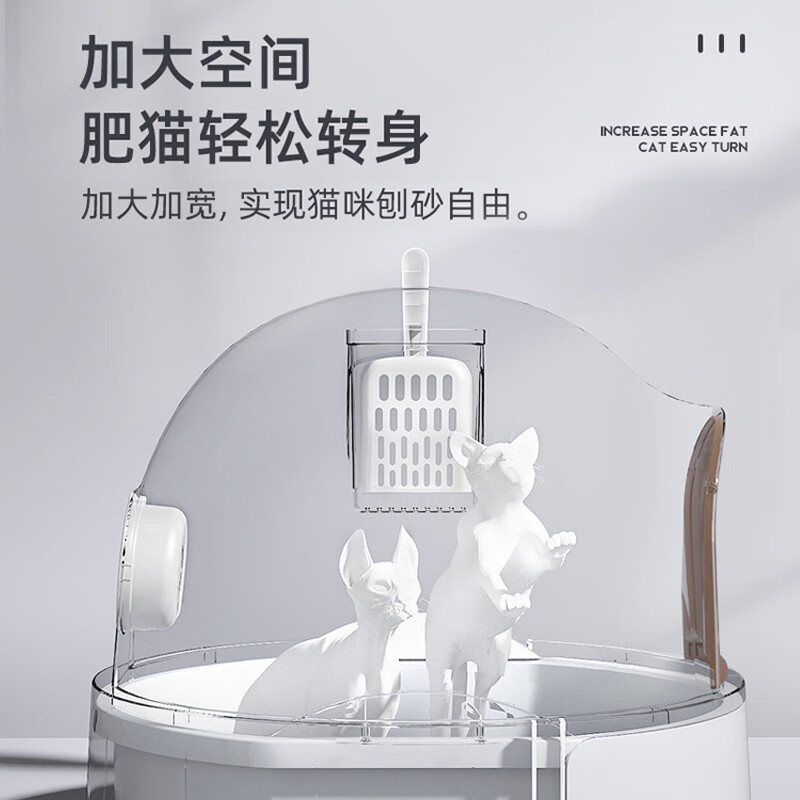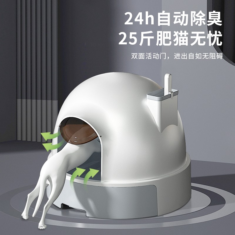 米小舒猫砂盆全封闭猫厕所顶出式特大号防外溅猫拉屎盆猫咪用品防带猫砂智能去臭 标准版【51*51*43】25斤以内-小白屋