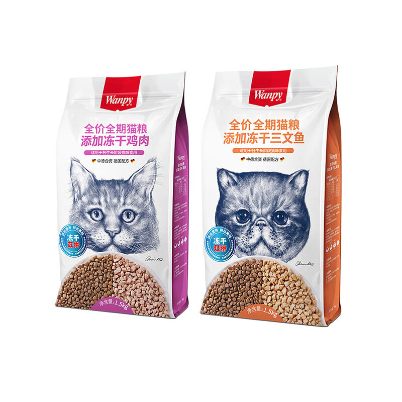 顽皮(Wanpy)冻干双拼猫粮鸡肉三文冻干全价营养增肥发腮成幼猫粮 红色 37382