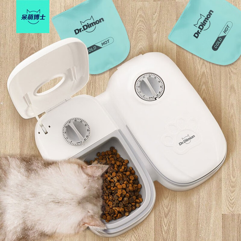 呆萌博士【降暑神器】宠物自动喂双餐食器猫咪狗湿粮定时定量罐头保鲜盒 无冰袋 双餐喂食器