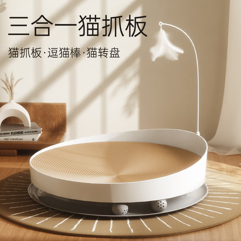 猫抓板耐磨不掉屑猫咪爪板圆形猫窝抓窝耐抓猫咪玩具自嗨解闷用品 大号猫抓板[替芯*2]