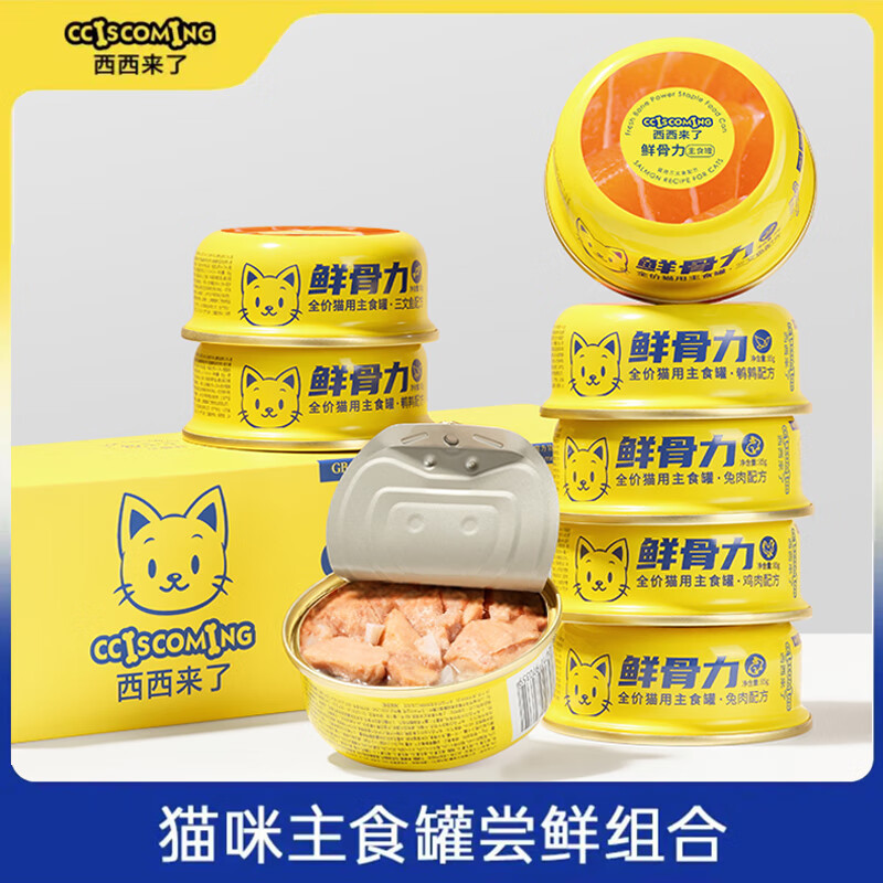 西西来了鲜骨力猫主食罐头全价生骨肉幼猫成猫宠物营养即食湿粮 混合口味12罐(散装无外盒) 86g