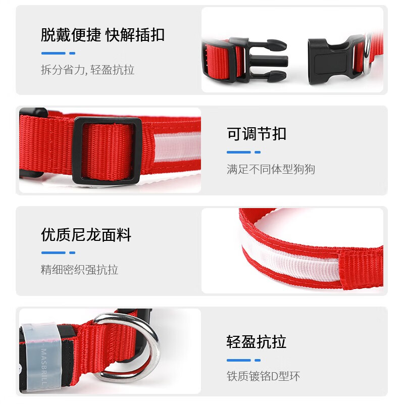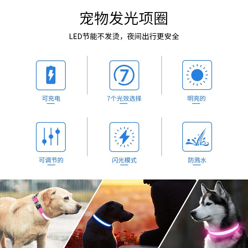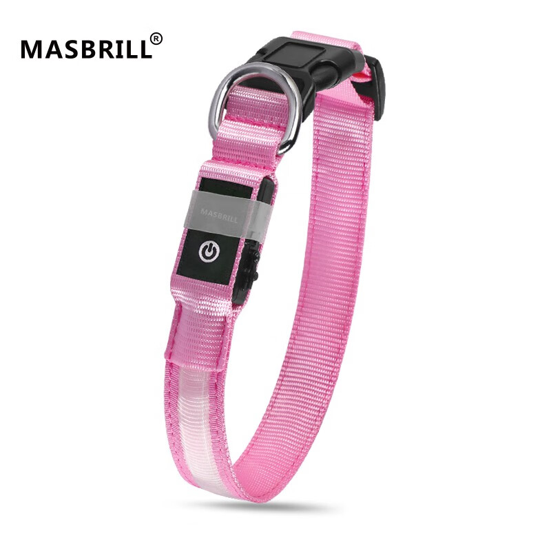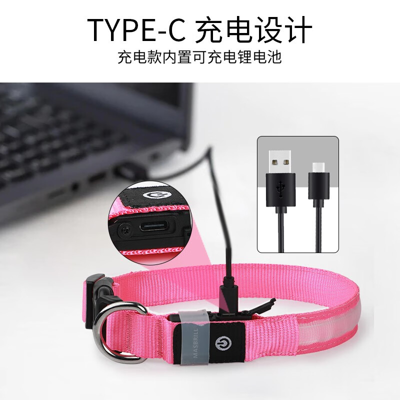玛思贝瑞(MASBRILL)狗狗项圈 发光脖套 中大小型犬小狗拉布拉多泰迪柴犬金毛宠物用品脖圈 粉色 S 适用颈围28-40cm