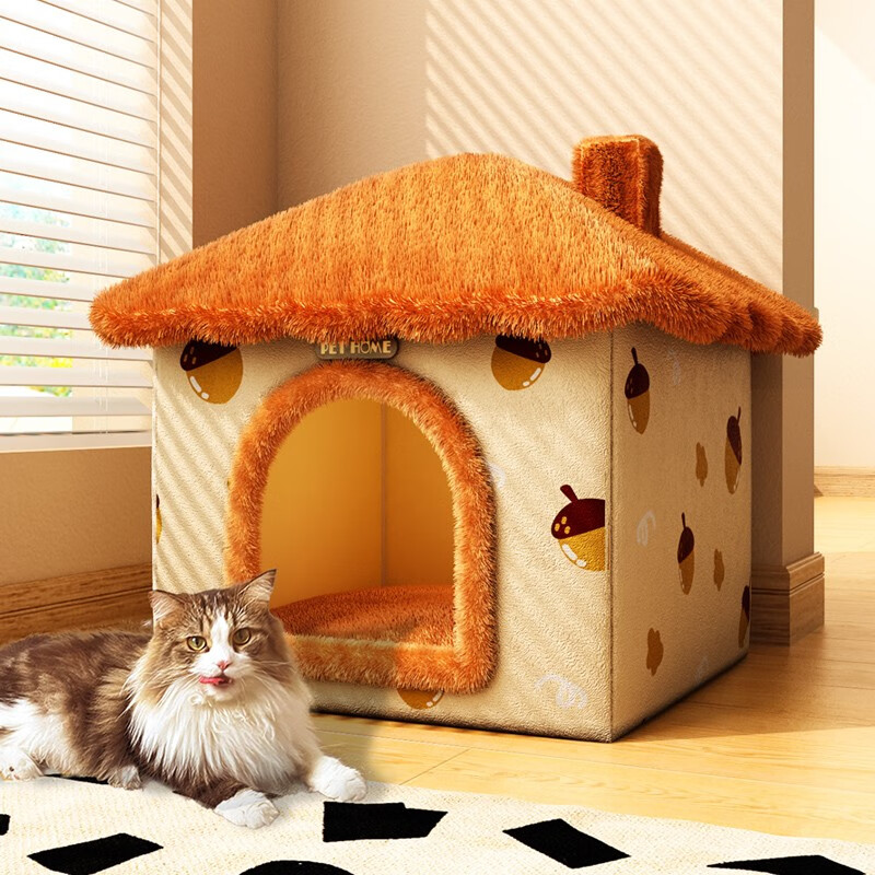 蔻丝猫窝冬季冬天保暖宠物发热电加热毯智能恒温半封闭式冬季窝猫房子 【防塌-大号栗子窝】40_33_42cm