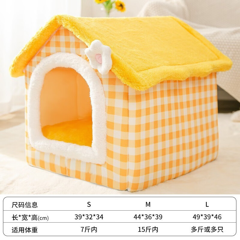 嬉皮狗狗窝房子型四季通用幼猫冬天保暖可拆洗猫窝狗屋冬季猫窝宠物床 清新小花房子窝 S-【适合7斤内猫咪】22年新款现货速发