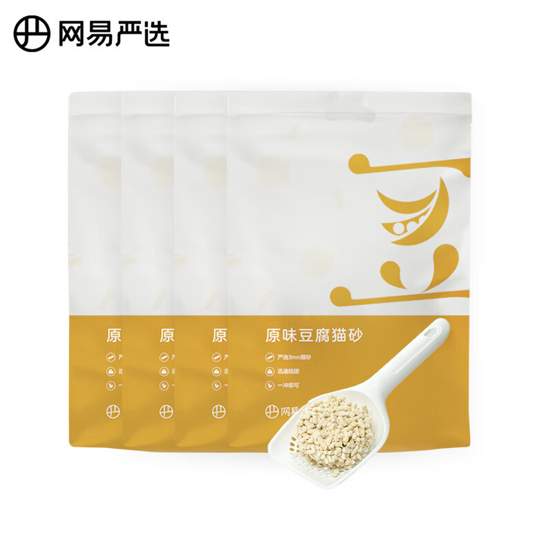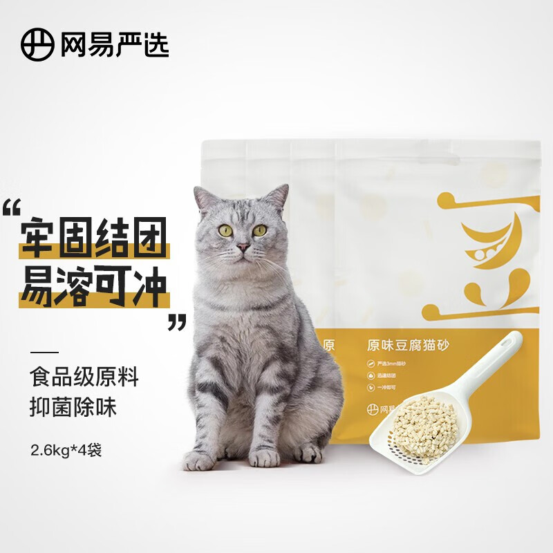 网易严选 3mm原味豆腐猫砂 吸水结团硬度高健康植物胶可冲厕所含水量低 【原味囤货装】2.6kg*4袋