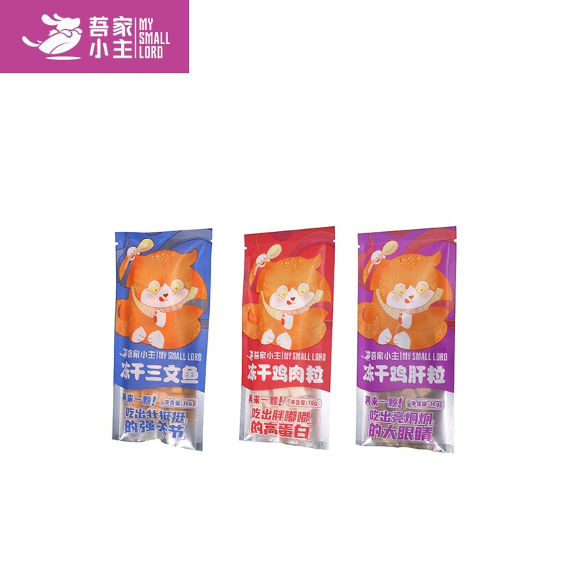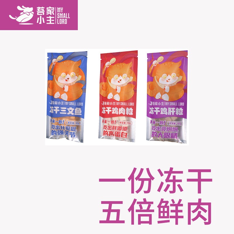 吾家小主宠物纯肉冻干猫狗零食营养增肥发腮鸡肝鸡肉三文鱼10克每袋 6袋组合装