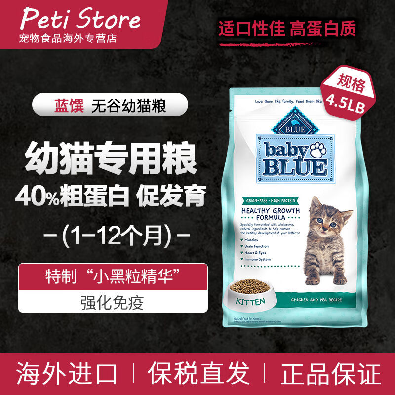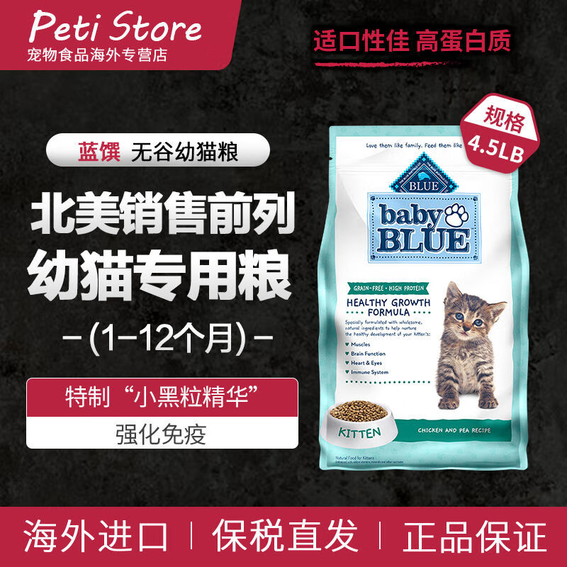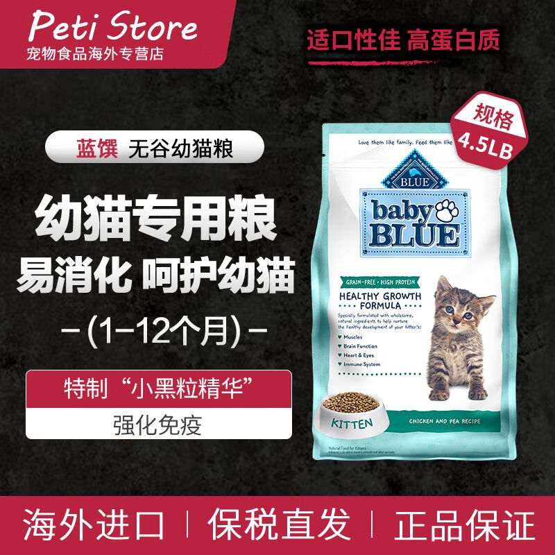 蓝馔(BLUE BUFFALO)幼猫粮猫粮幼猫专用粮1到3月奶糕4到12月 无谷幼猫粮4.5磅【效期6个月以上 有标带防伪保税仓直发