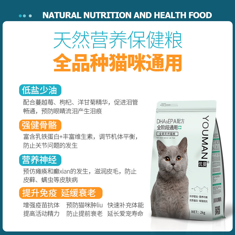 优曼全阶段猫粮2kg成猫幼猫老猫全价营养粮奶糕英短猫咪增肥发腮