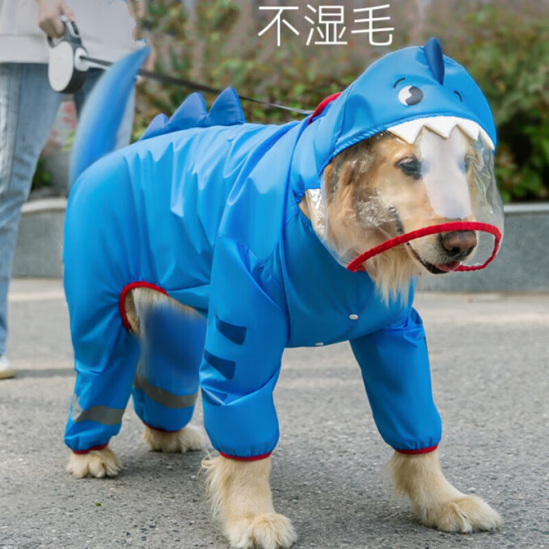 金毛狗狗雨衣中大型犬四脚防水全包雨天衣服防脏神器边牧宠物雨披 【包到尾巴】立体鲨鱼 3XL( 建议体重18-26斤)