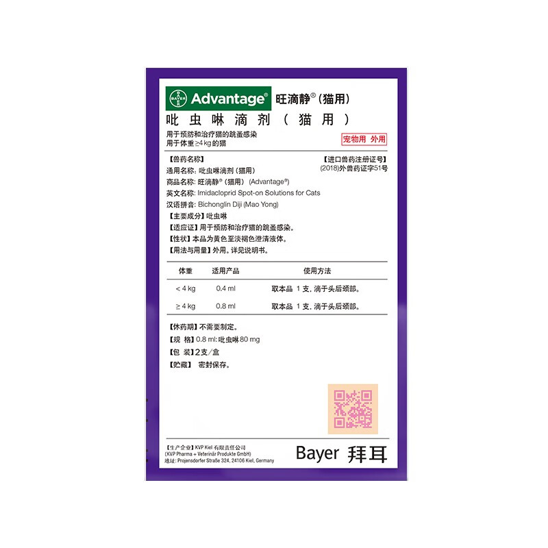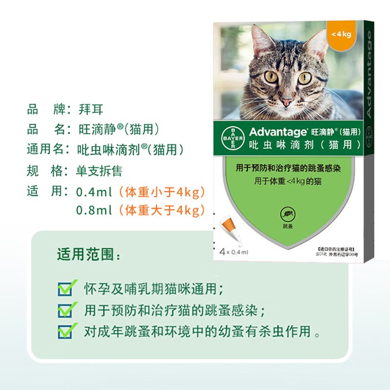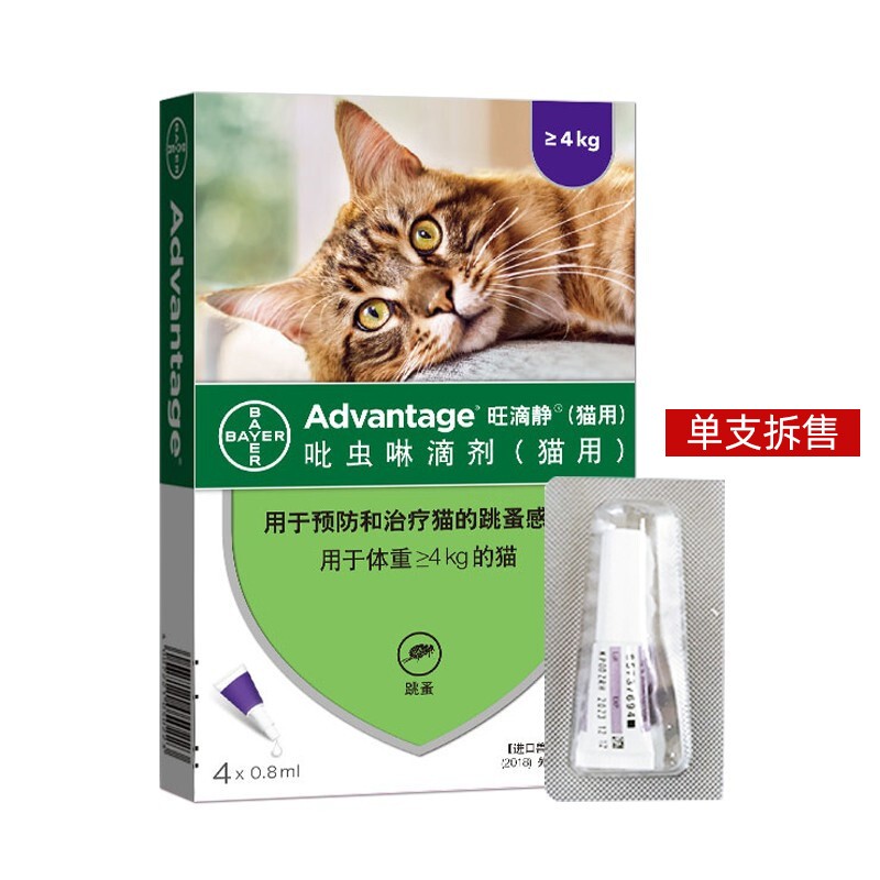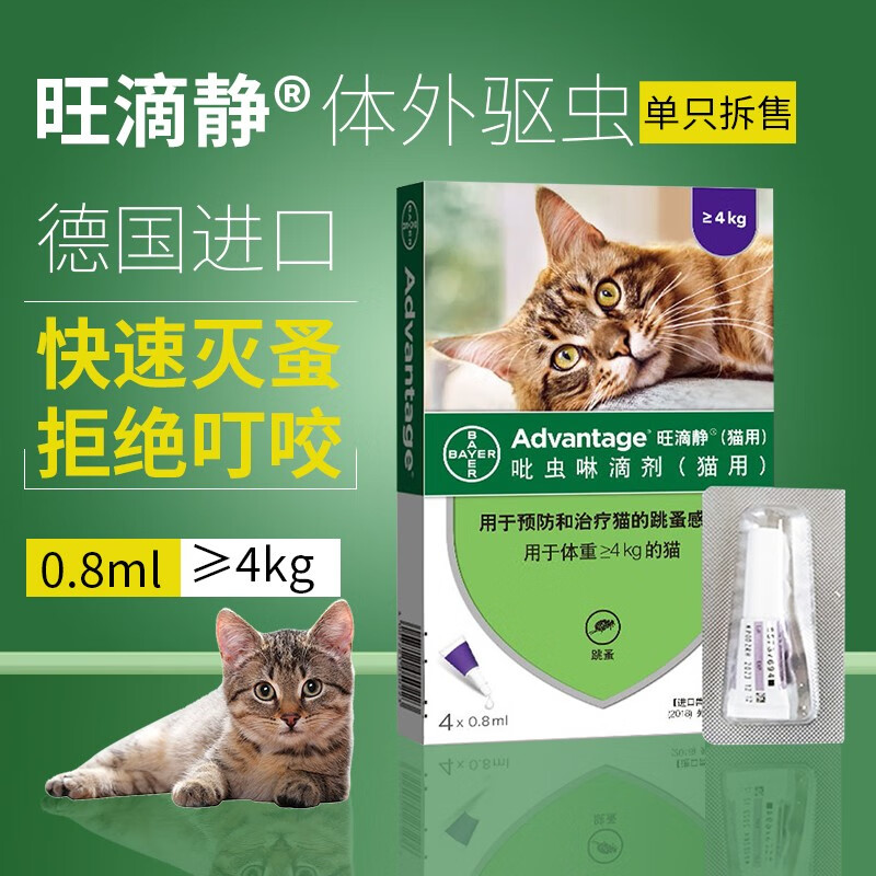 德国进口旺滴静滴剂 猫咪体外驱虫药宠物狗狗除跳蚤虱子大型犬吡虫啉杀虫幼犬猫用打虫药单支拆售 0.8ML 大于4kg猫用