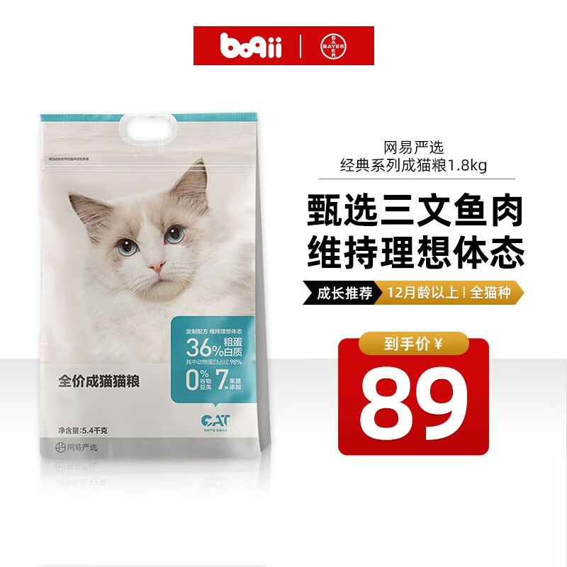 网易严选 猫粮 宠物猫咪幼猫成猫猫干粮 成猫丨全价1.8kg