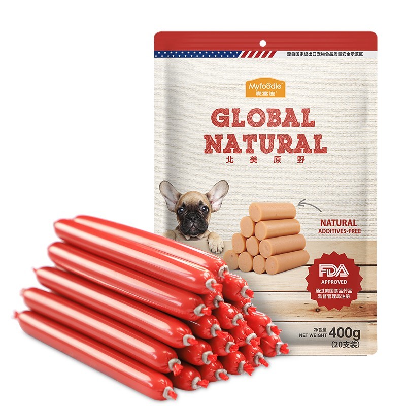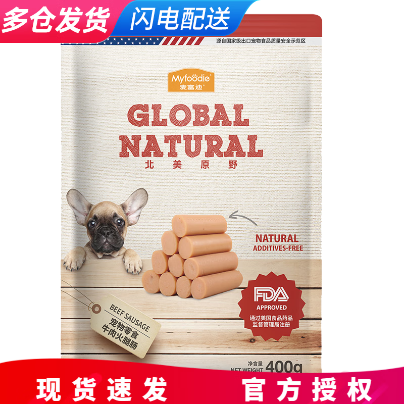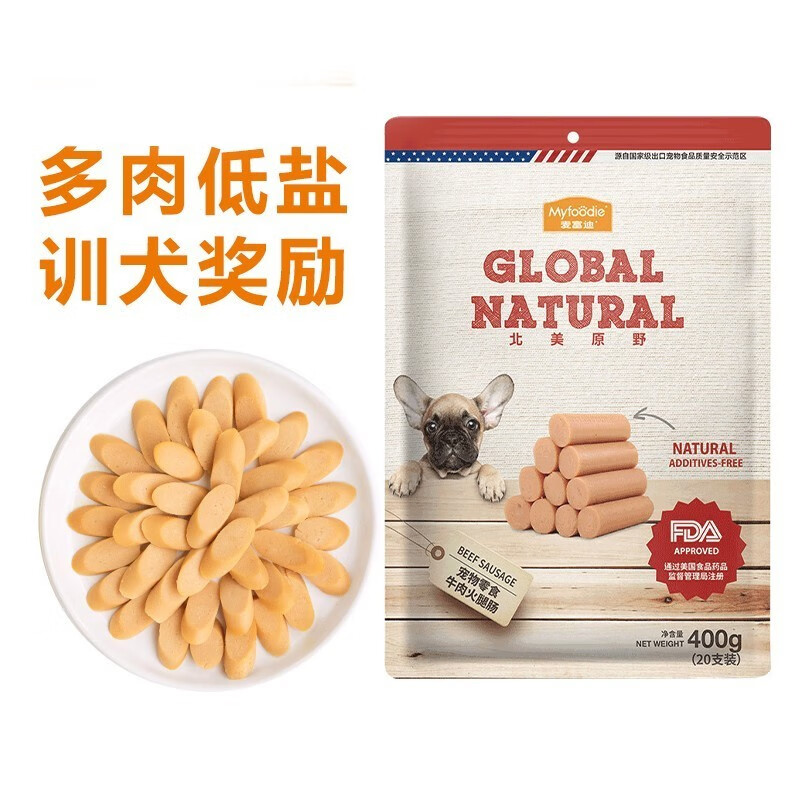 麦富迪狗零食宠物鸡肉干鸭肉干鸡胸肉鸭胸比熊泰迪训练奖励狗零食北美原野 牛肉火腿肠400g
