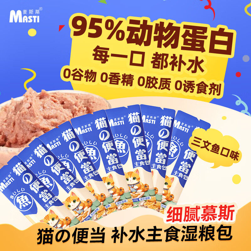 麦斯蒂猫咪猫饭主食餐包猫湿粮便当全价猫粮补水发腮鸡肉三文鱼猫湿粮 【2天尝鲜】三文鱼 50g 6包