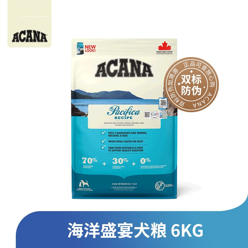 爱肯拿(ACANA)狗粮全犬种通用全年龄段狗主粮进口双标防伪无谷狗粮 海洋盛宴系列6kg