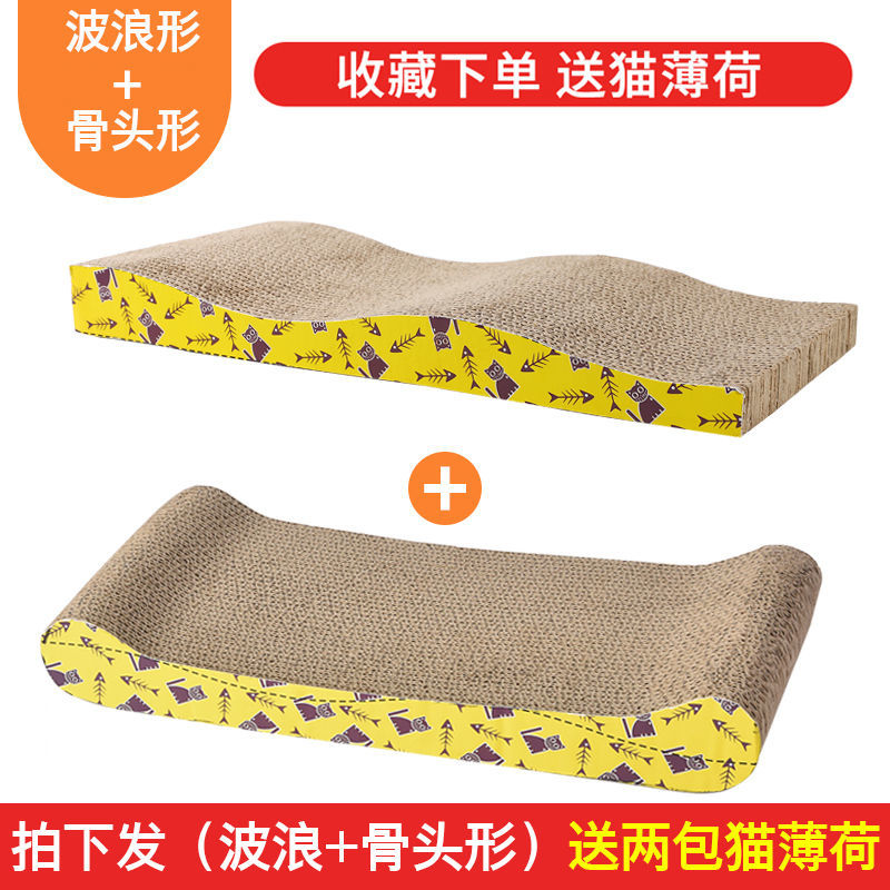【工厂直发】猫抓板磨爪器猫爪板瓦楞纸猫抓垫猫咪玩具磨抓板猫窝玩具猫咪用品地狼 2个大号(波浪 骨头)收藏 猫薄荷