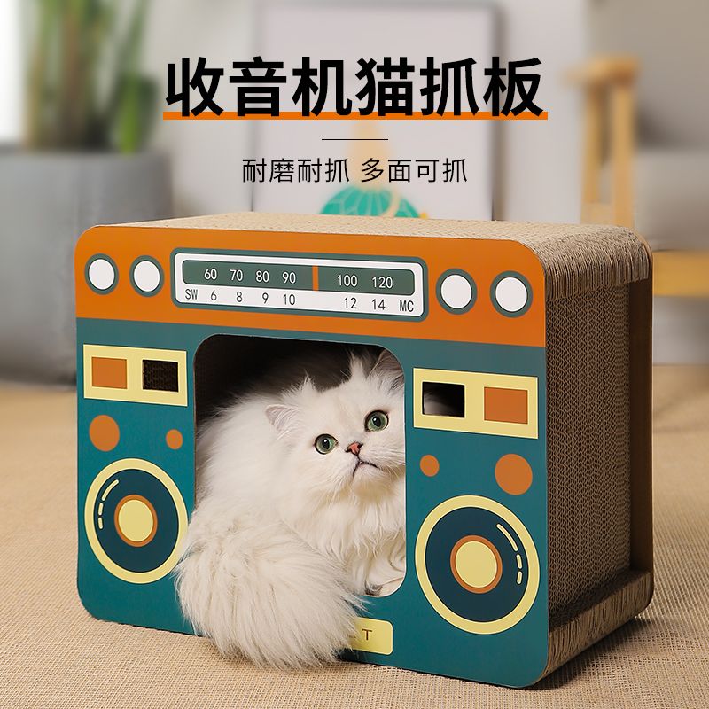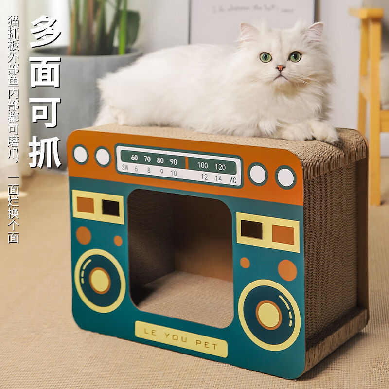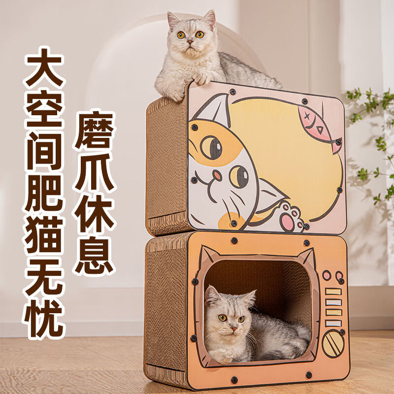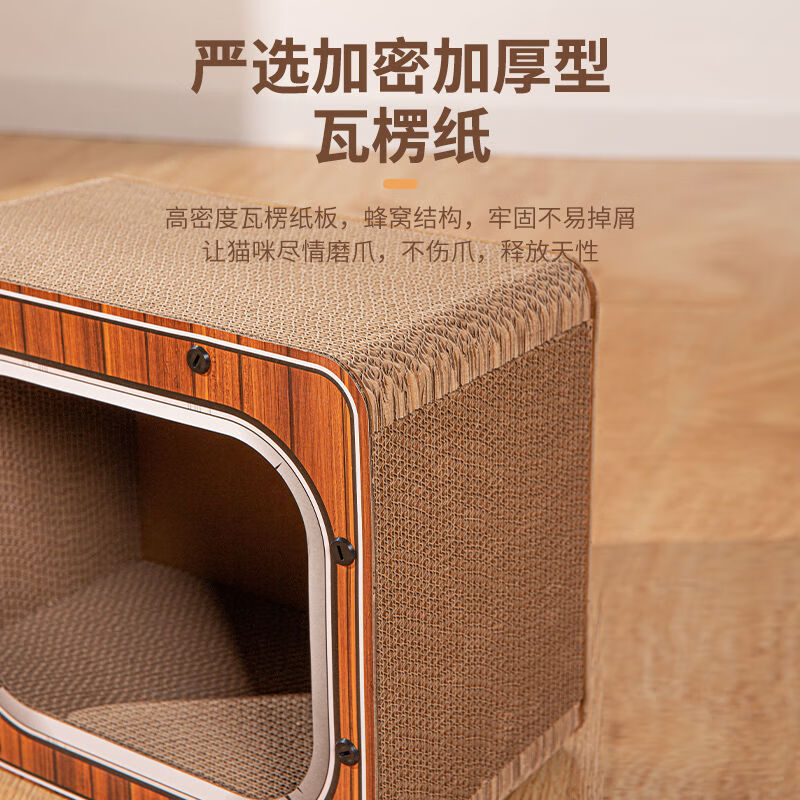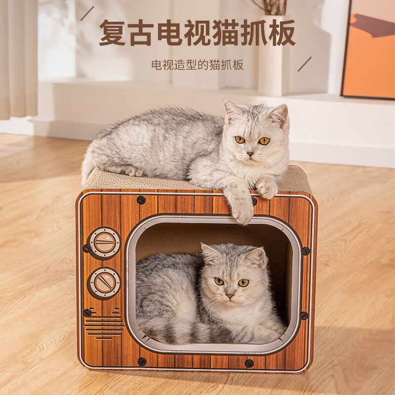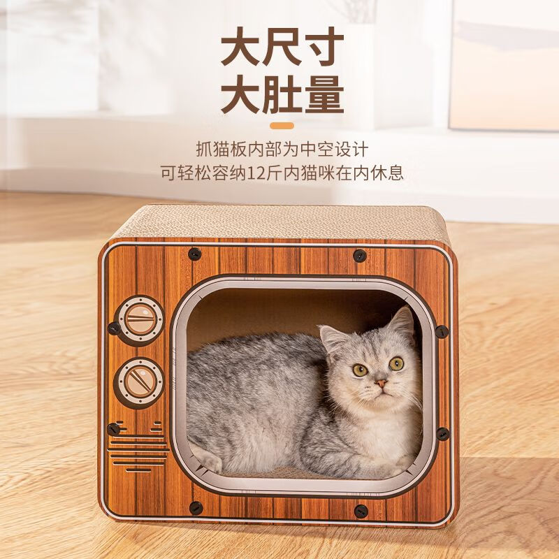猫抓板猫窝一体电视机猫盒耐抓耐磨立体猫咪玩具纸箱不掉屑猫屋 木纹复古【电视机猫抓板】 【加厚加密瓦楞纸】