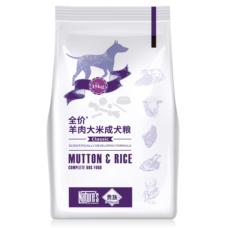 贵族【防伪可查】贵族狗粮成犬羊肉大米15kg泰迪拉布拉多金毛