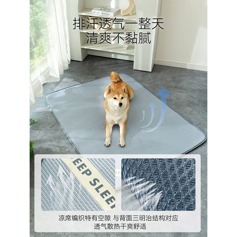 嬉皮狗(hipidog)狗垫子睡觉用夏天冰垫狗狗睡垫宠物凉席夏季狗窝地垫四季通用猫垫 蓝色M码-60*50CM建议20斤内