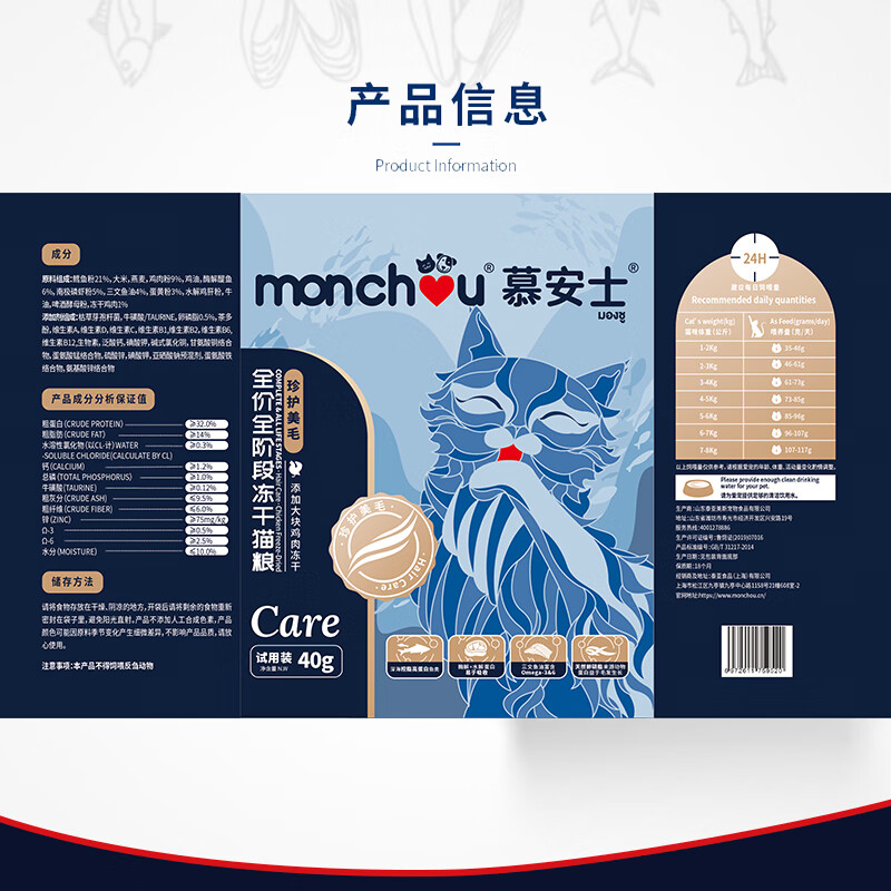 慕安士(monchou)泰国品牌 全价全阶段珍护美毛冻干猫粮试吃包40g