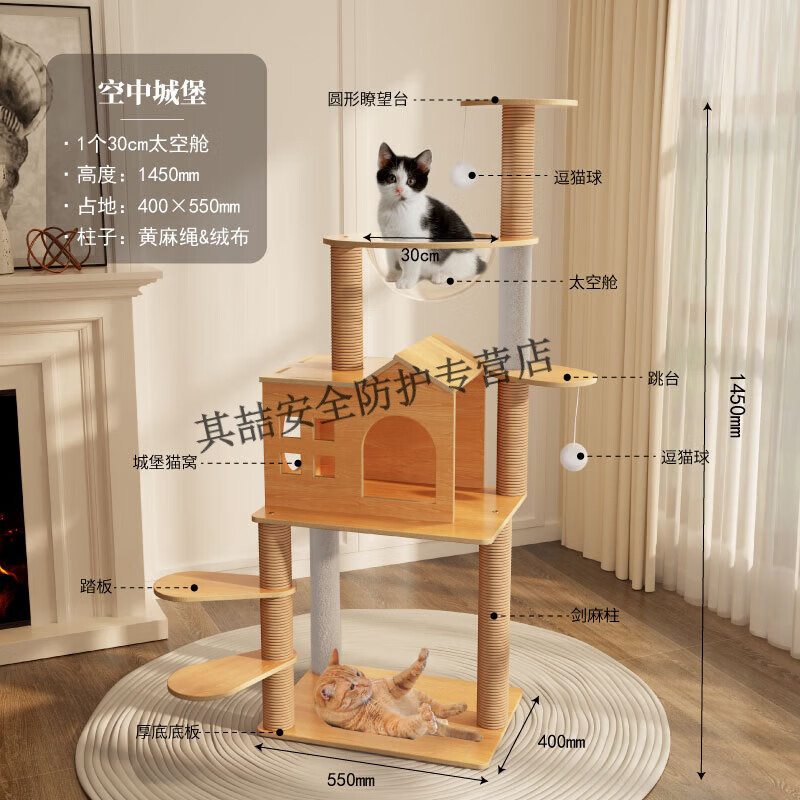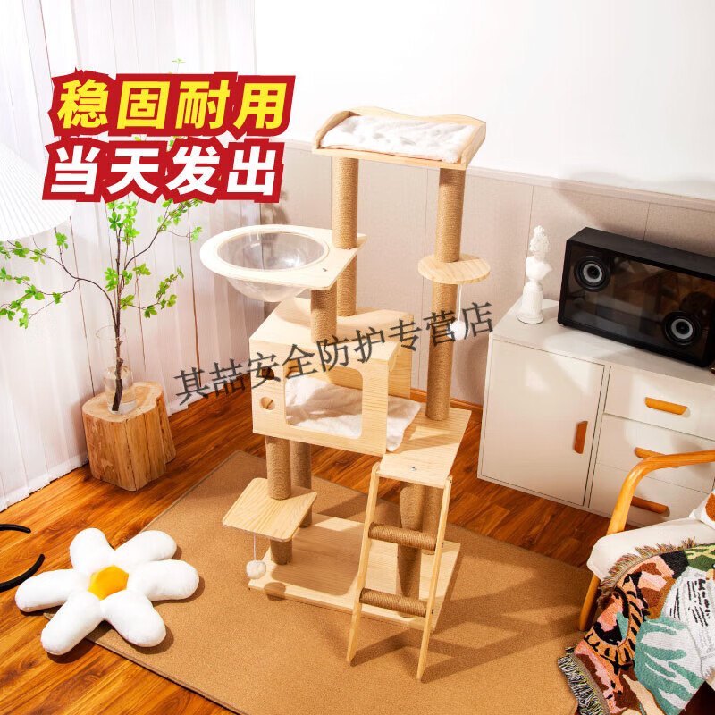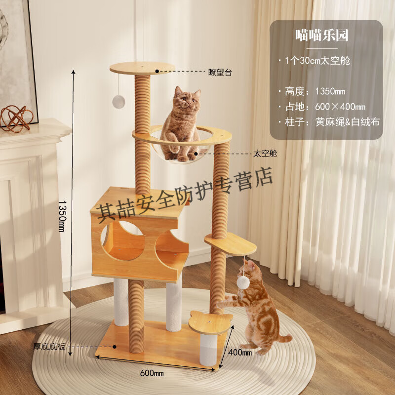 宠贝亚猫爬架实木猫窝猫树一体全实木猫架猫塔太空舱剑麻大型架子