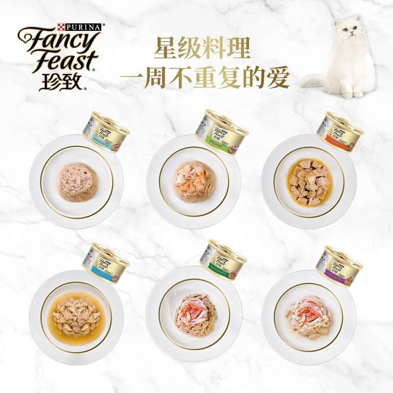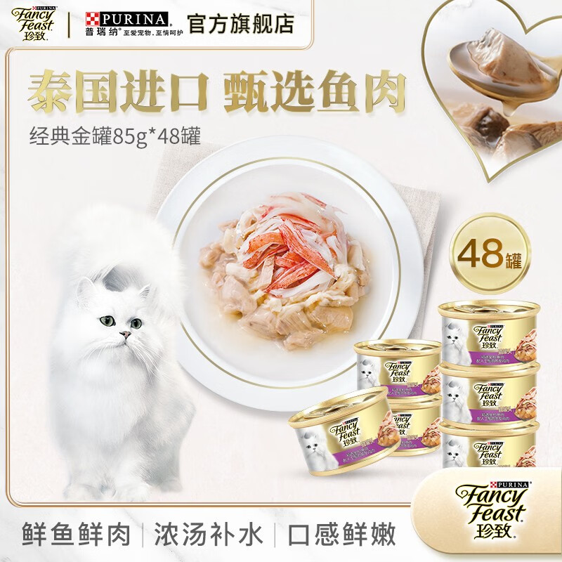 珍致(FancyFeast)猫罐头 进口成猫猫湿粮罐头猫零食 48罐 金枪鱼肉鸡肉85g*48罐