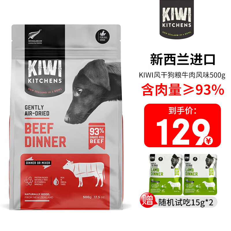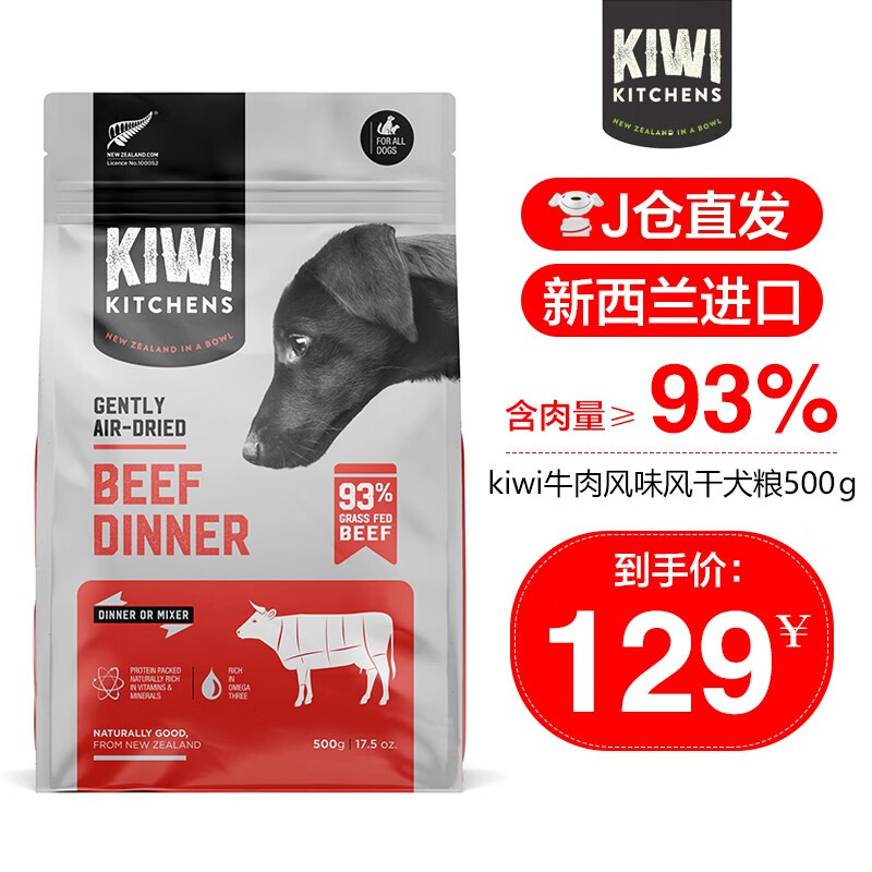 KIWI KITCHENSKiwi狗粮 新西兰 原装进口 温和风干狗粮 成幼犬通用 风干犬主粮 牛肉风味500g