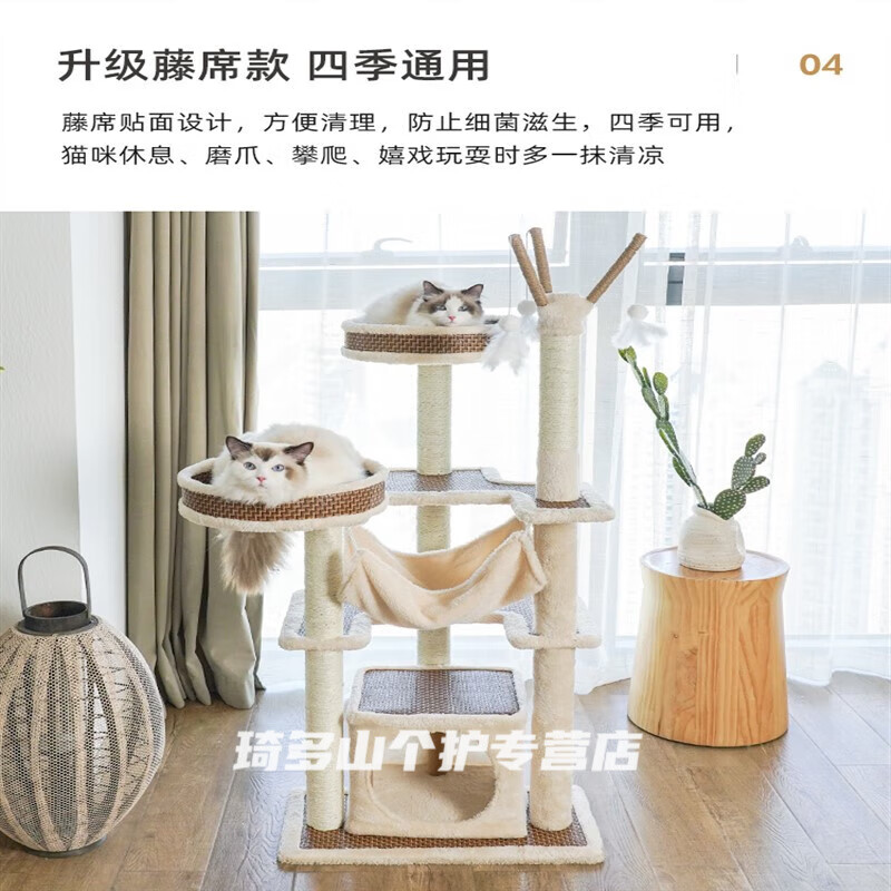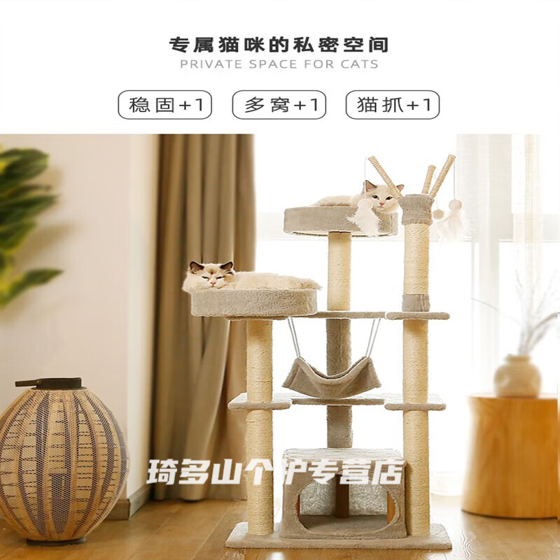 猫爬架猫窝一体猫抓板猫树大型实木猫咪用品四季通用小型猫咪架子 升级中型款YM-1()七层