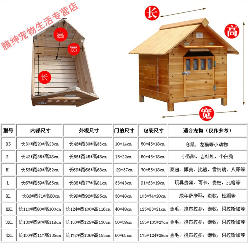 吉彩吉杉木狗房子室外狗屋别墅犬舍防晒防雨防水木制狗窝猫屋四季通用窝 有门有双窗 遮阳板 M号56*49*52cm参考宠物体长身高 原木色宠物屋
