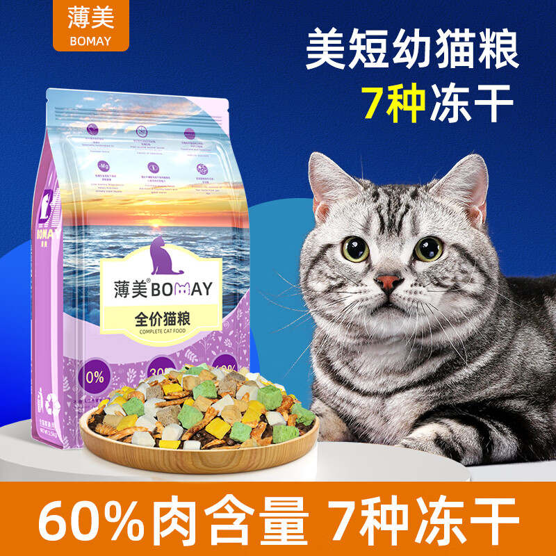 BOMAY幼猫猫粮1到12月专用美短虎斑幼年期营养增肥胖脸全拼新鲜奶糕粮5 纯粮无冻干【试吃装】 1斤
