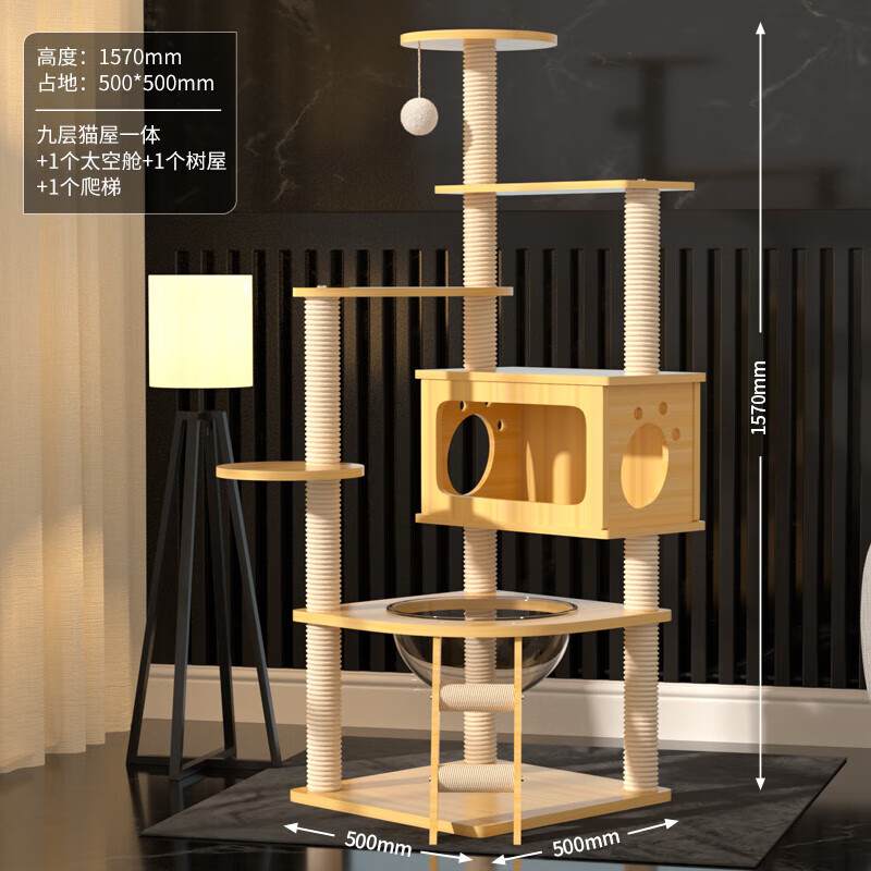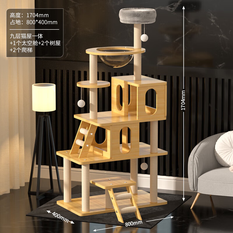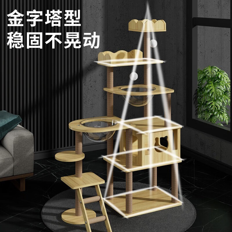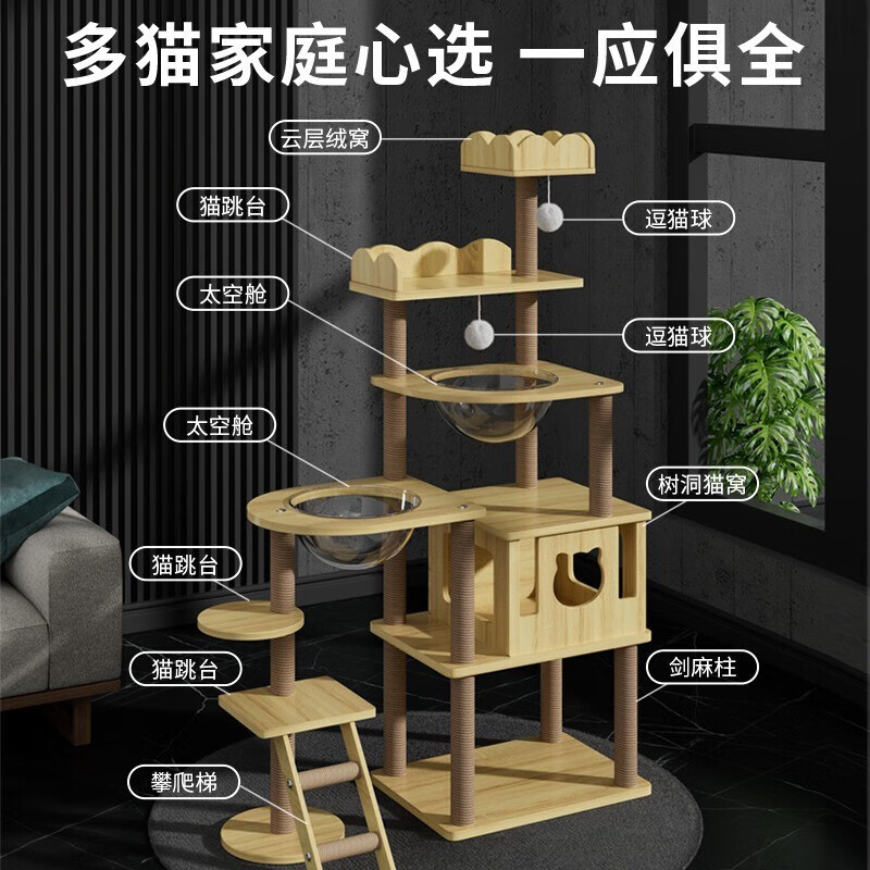 猫爬架大型多层猫窝猫树一体猫架带窝猫抓柱耐磨耐抓剑麻通天柱跳台太空舱小户型四季通用宠物猫玩具 【1.70米】皇朝天宫