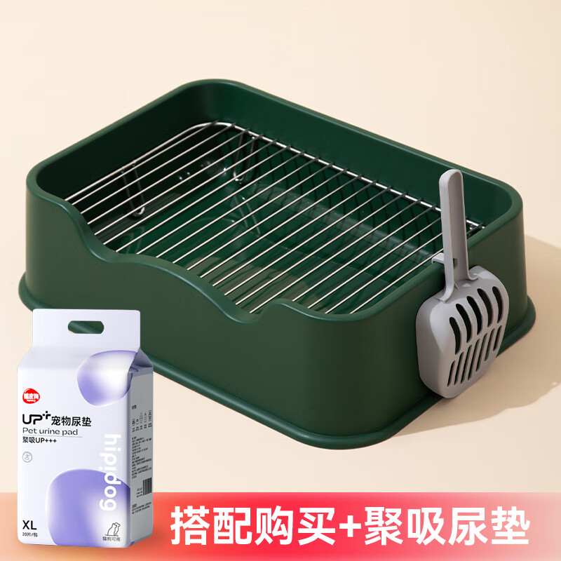 狗狗厕所宠物便盆防粘屎狗砂盆尿盆不锈钢防小型犬宠物用品 【组合】森林绿网距15mm 瞬吸尿垫
